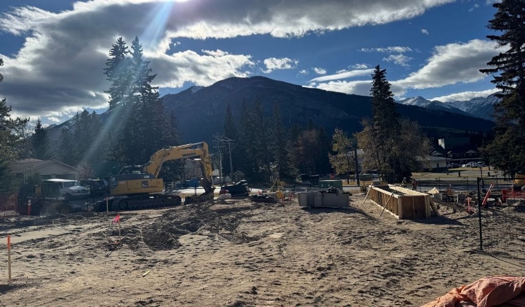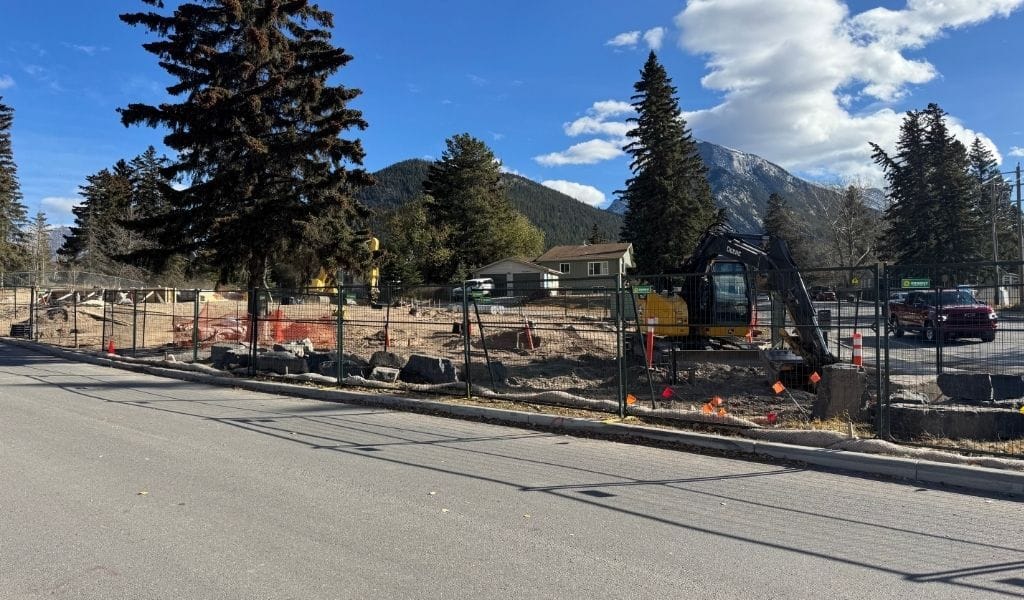 Construction on the new parkette that will host the Banff welcome sign