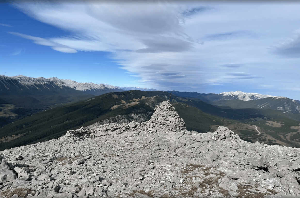 Start near Forgetmenot Pond, cross the Elbow River, and head up the steep grassy slope to gain the ridge. The route is direct with a clear line to the ridge crest. Once on the ridge, travel north toward the summit. Return the same way.