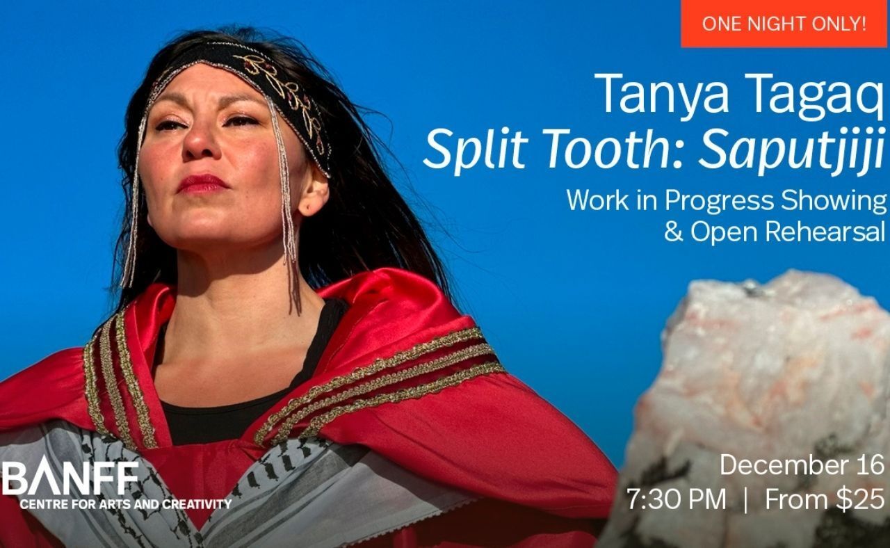 You will be watching an open rehearsal and work-in-progress showing of Split Tooth: Saputjiji. It is a new piece created by Inuk artist Tanya Tagaq, based on the themes and stories in her acclaimed book Split Tooth. Tagaq is known for her incredibly powerful vocal style. Rolling Stone calls her one of the avant garde’s most dynamic performers. This show places her voice at the centre.