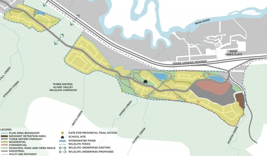 A Town About to Double. The long-term plan covers more than 300 hectares and could eventually add up to 7,000 homes and 15,000 residents across two areas: Three Sisters Village and Smith Creek. The first phase of Three Sisters Village includes underground utilities, 700 to 1,075 housing units, playgrounds, open spaces, an off-leash dog park, and a bike pump track. Project director Chris Ollenberger told CBC it is a âmonumental stepâ and said Smith Creekâs first phase could be finished within five years.