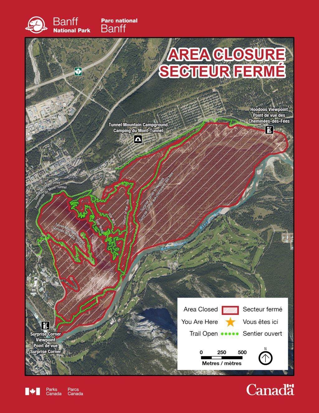 Where This Applies (And Where It Doesn’t). The restriction covers areas around Tunnel Mountain and east toward the Hoodoos Trailhead. Importantly, official trails remain open. You can still use the Tunnel Mountain Summit Trail, Tunnel Mountain Road, the technical bike trails, Surprise Corner to the Hoodoos, and the trail that parallels Tunnel Mountain Road. Everything else inside the closure area is off-limits.