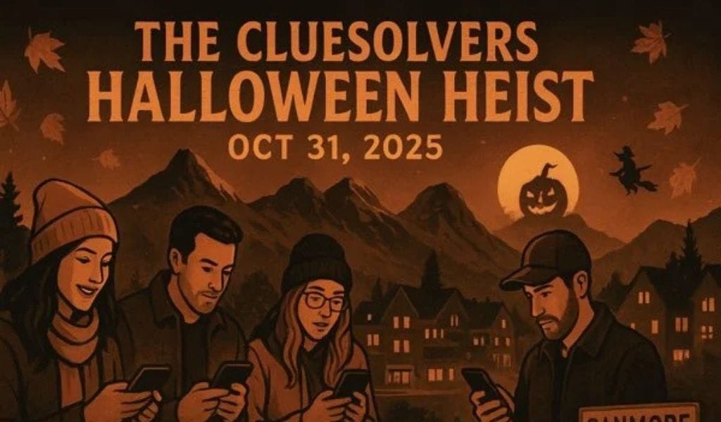 Next Friday (Oct. 31), we’re hosting a Halloween-themed Cluesolver adventure in Canmore. If you haven’t heard of Cluesolver before, it’s part scavenger hunt, part escape room, and part mystery story, all played outdoors through a mobile app. You’ll explore local landmarks, solve puzzles, and race to uncover the final secret.
