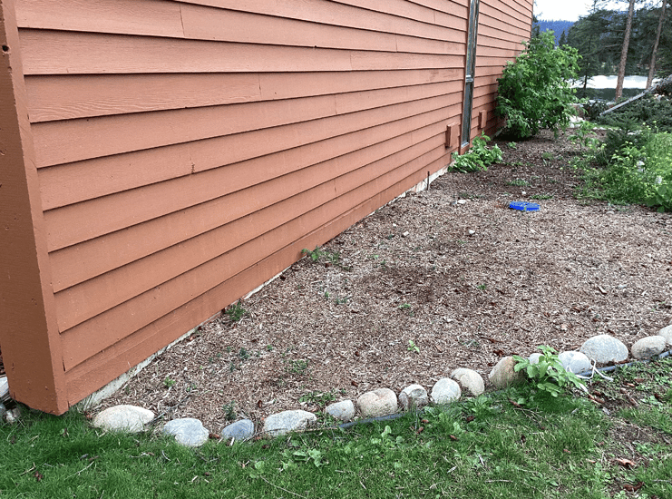 Mulch under combustible siding on the shore of Beauvert Lake