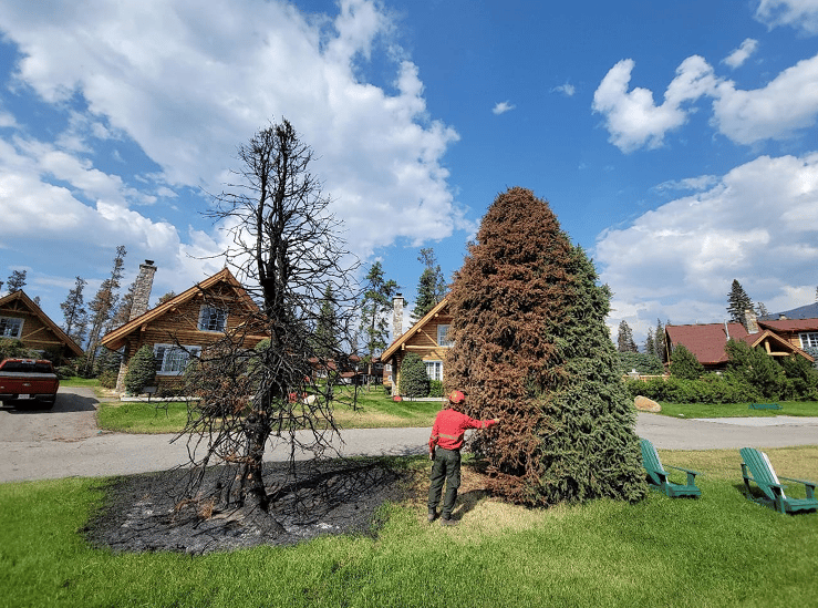 Not every part of Jasper burned. NRCan credited nearly two decades of proactive fuel treatment work around the town. Since 2003, Parks Canada crews had thinned dense stands of conifer trees, removed low branches that can carry flames into the canopy, and cleared dead or beetle-killed timber in the forests surrounding the community. The goal was to break up continuous fuels that allow fires to climb upward and spread uncontrollably.
